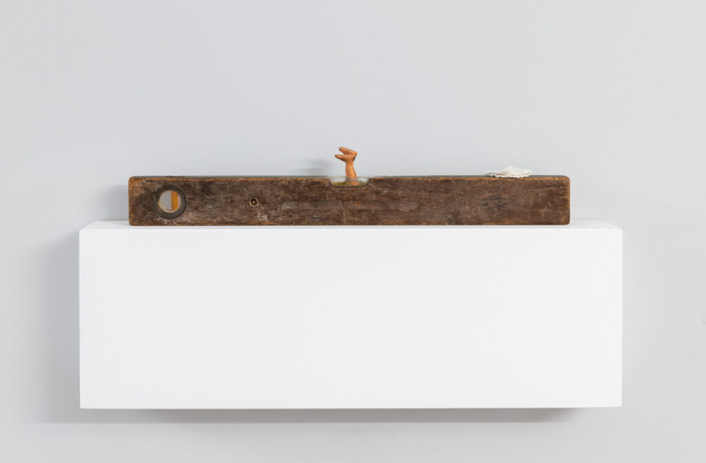 Tauchen in der Wasserwaage, 2017, Holz, Kunststoff, Stoff